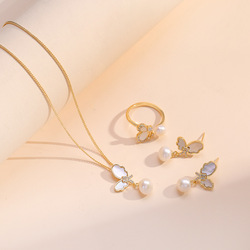 BM高品质天然珍珠蝴蝶珠宝套装女性淡水养殖珍珠套装